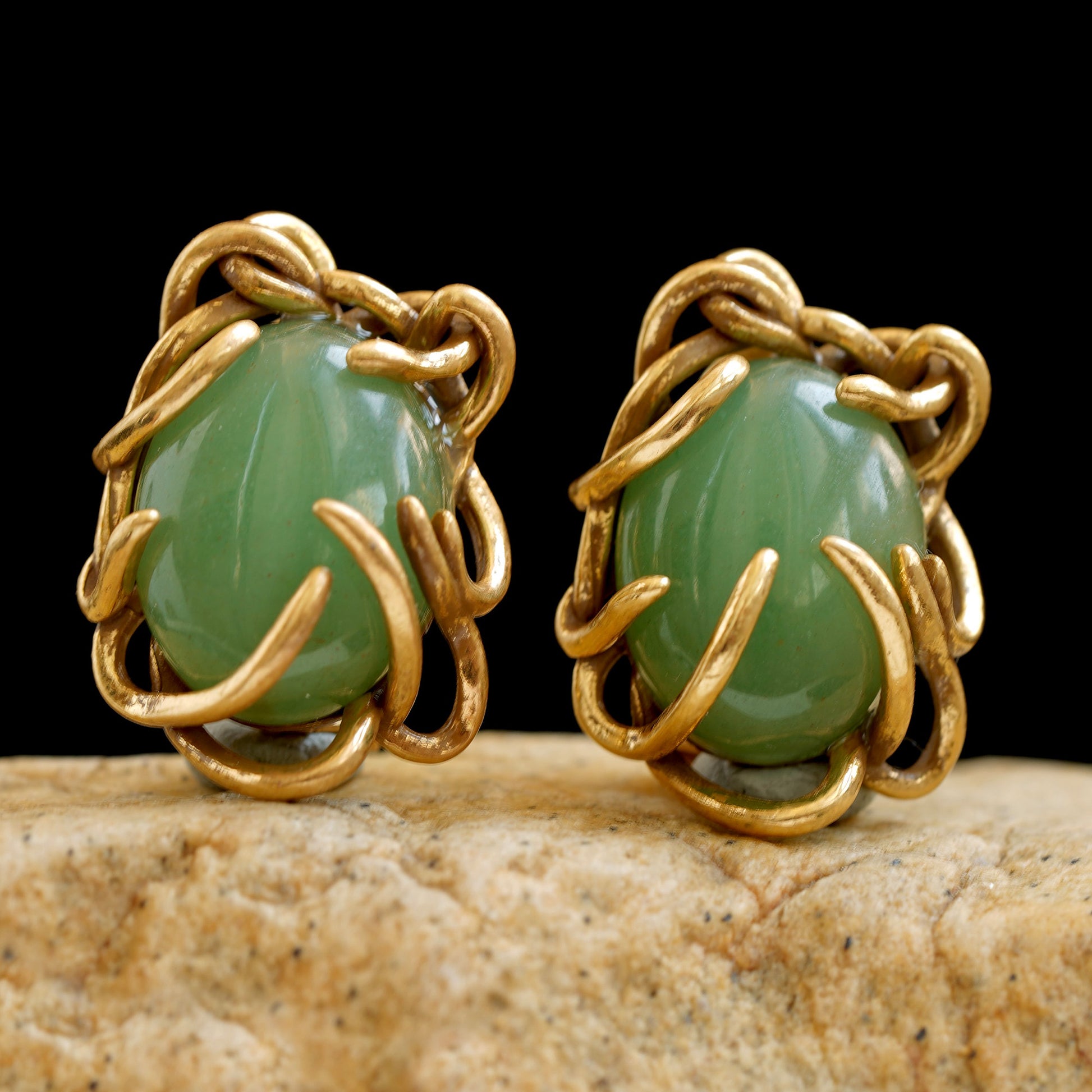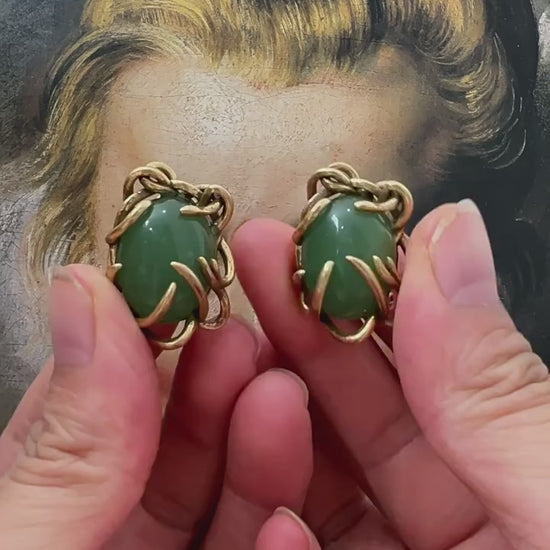 14K Yellow Gold Jade Earrings
