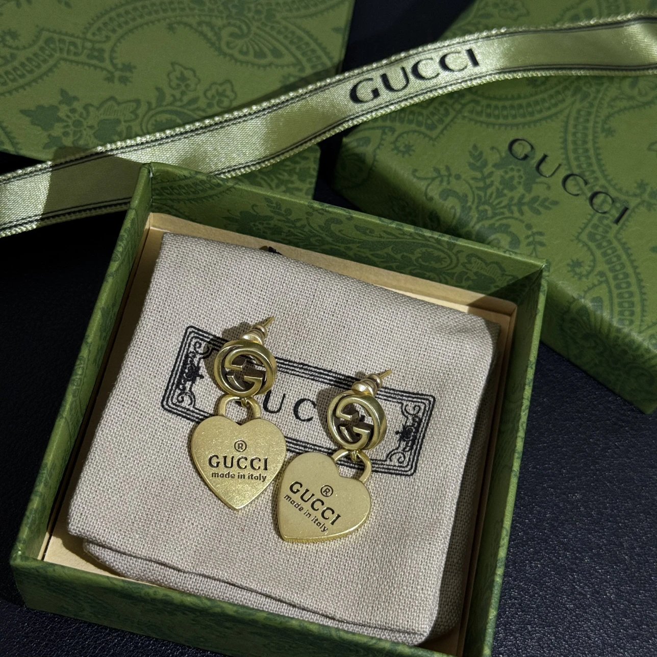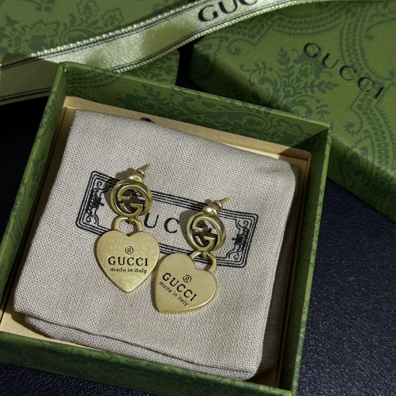G Vintage bronze heart pendant earrings 925 silver needle hypoallergenic