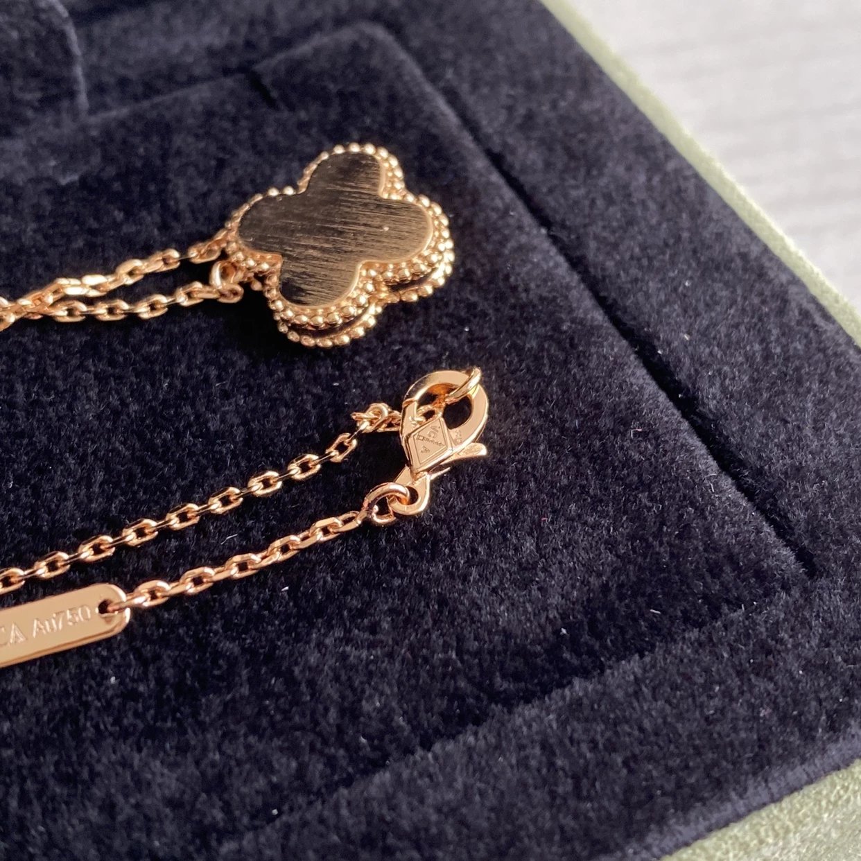 VC Four-leaf Clover Agate Diamond Necklace Pink Full Set Packaging