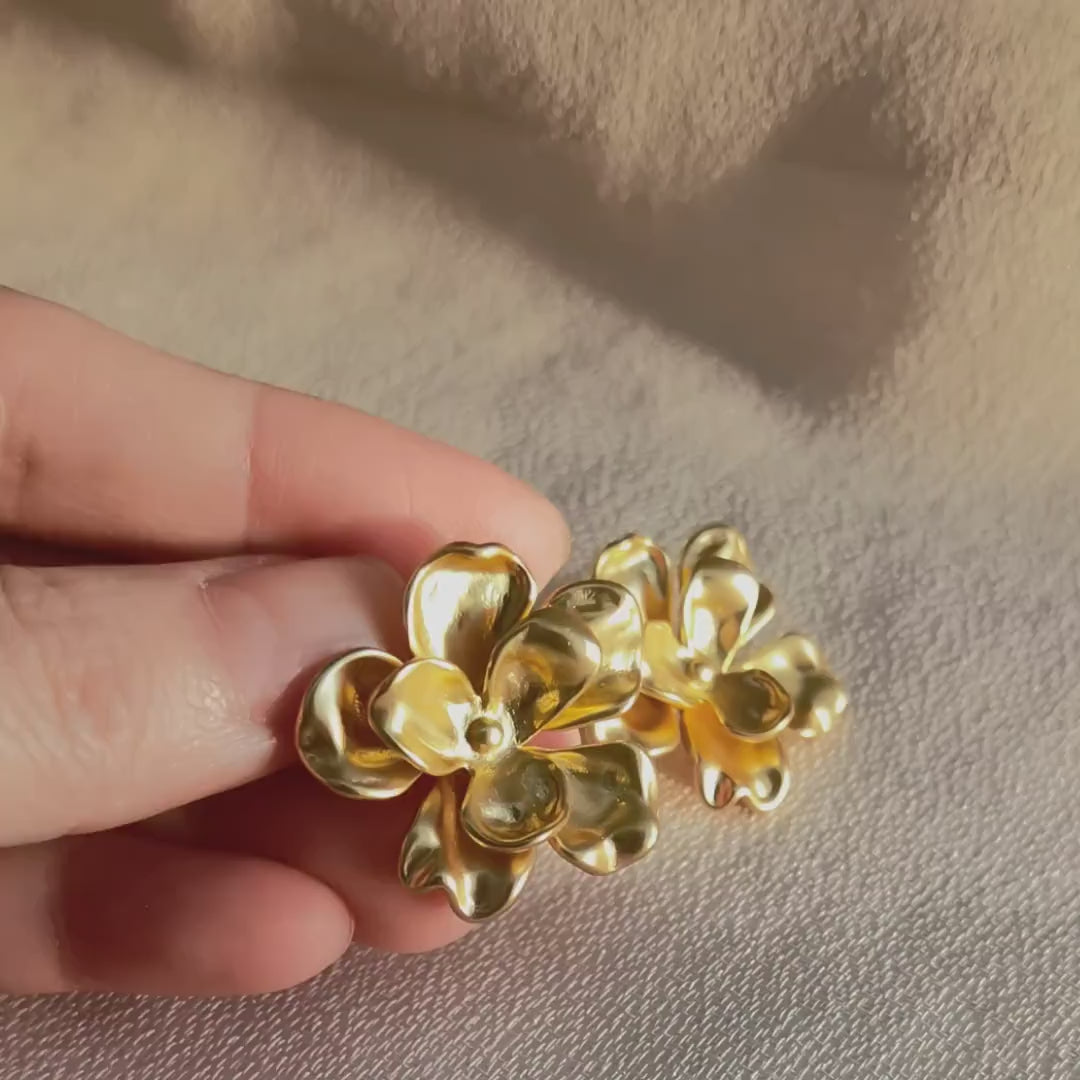 Absolutely stunning earrings! The gold flower looks so realistic and the craftsmanship is amazing. They're lightweight and comfortable too. Five stars.